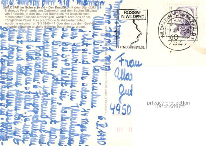 73018937 alte Postkarte Wildbad Schwarzwald Kurplatz mit Standbild des Erzherzogs Ferdinand von oesterreich postalisch gelaufen Erhaltung siehe scans [WerneD78] KatCode: 11110008235079