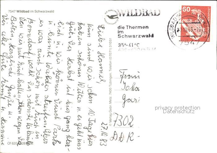 72505561 alte Postkarte Wildbad Schwarzwald Luftaufnahme postalisch gelaufen Erhaltung siehe scans KatCode: 11110008235079