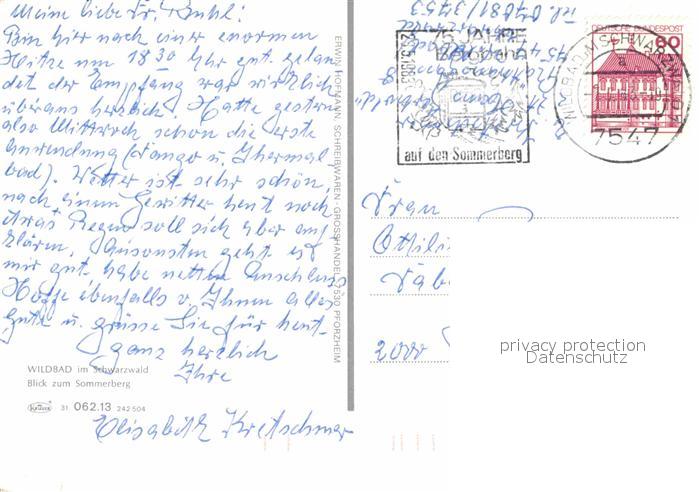 72843551 alte Postkarte Wildbad Schwarzwald mit Sommerberg postalisch gelaufen Erhaltung siehe scans [LiesaD40] KatCode: 11110008235079