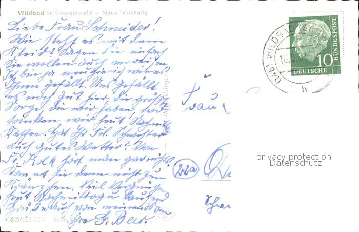 72202554 alte Postkarte Wildbad Schwarzwald Neue Trinkhalle postalisch gelaufen Erhaltung siehe scans KatCode: 11110008235079