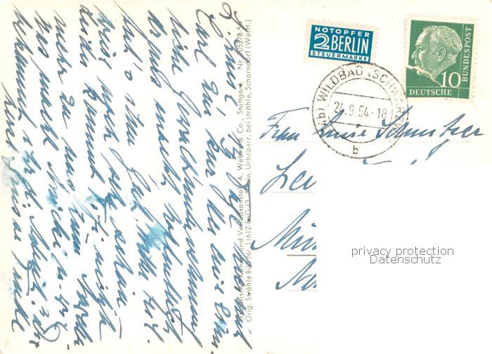 73771976 alte Postkarte Wildbad Schwarzwald Oberes Enztal mit Sommerberg Fliegeraufnahme postalisch gelaufen Erhaltung siehe scans [WerneD78] KatCode: 11110008235079