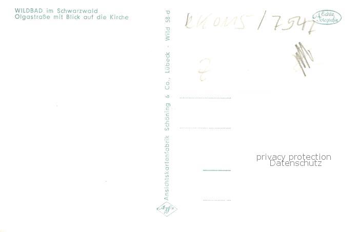 73763840 Wildbad Schwarzwald Olgastrasse mit Kirche postalisch nicht gelaufen Erhaltung siehe scans [WerneD78] KatCode: 11110008235079