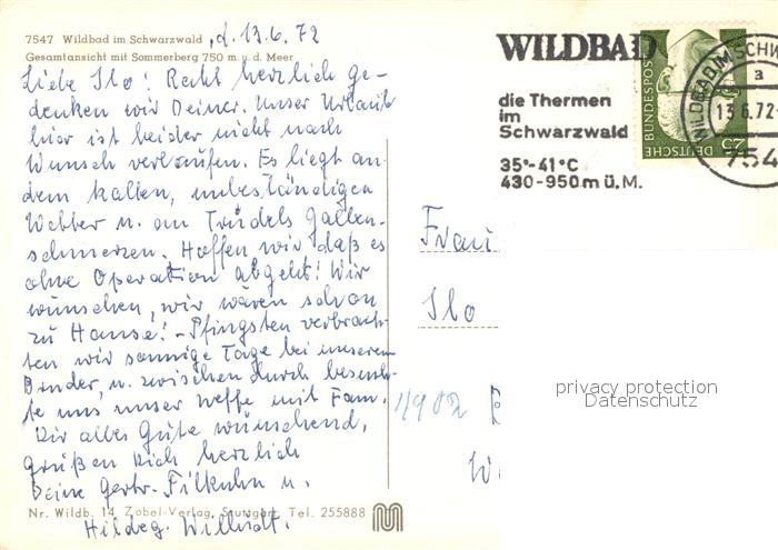 73126743 alte Postkarte Wildbad Schwarzwald Panorama postalisch gelaufen Erhaltung siehe scans [KathaD81] KatCode: 11110008235079