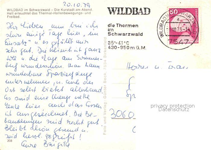 72791753 alte Postkarte Wildbad Schwarzwald Panorama Kurstadt am Abend Thermalbad postalisch gelaufen Erhaltung siehe scans [FriedD77] KatCode: 11110008235079