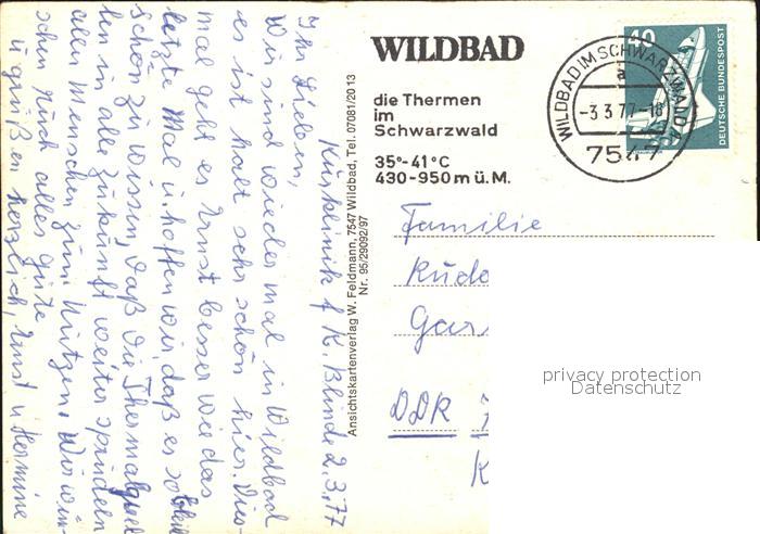 72504984 alte Postkarte Wildbad Schwarzwald Panorama Stadtansicht Kirche postalisch gelaufen Erhaltung siehe scans KatCode: 11110008235079