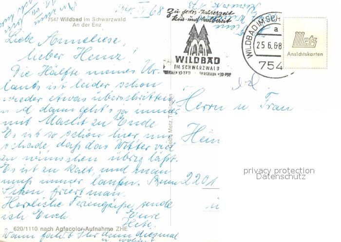 72692821 alte Postkarte Wildbad Schwarzwald Partie an der Enz postalisch gelaufen Erhaltung siehe scans [FriedD77] KatCode: 11110008235079