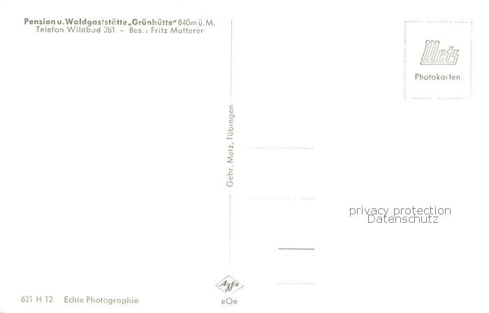 73761485 Wildbad Schwarzwald Pension und Waldgaststaette Gruenhuette postalisch nicht gelaufen Erhaltung siehe scans [FriedD77] KatCode: 11110008235079