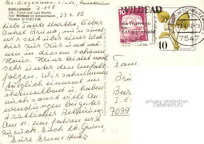 73836645 alte Postkarte Wildbad Schwarzwald Quellenhof Sanatorium postalisch gelaufen Erhaltung siehe scans [WerneD78] KatCode: 11110008235079