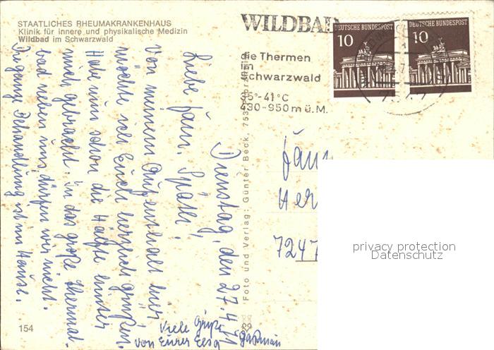 72420140 alte Postkarte Wildbad Schwarzwald Rheumakrankenhaus postalisch gelaufen Erhaltung siehe scans KatCode: 11110008235079