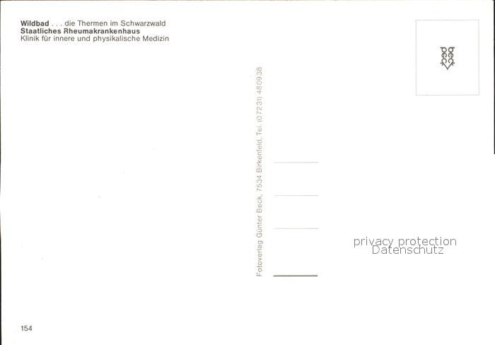 72306206 Wildbad Schwarzwald Rheumakrankenhaus postalisch nicht gelaufen Erhaltung siehe scans KatCode: 11110008235079