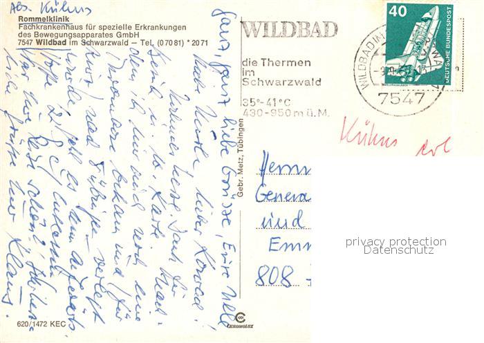73030480 alte Postkarte Wildbad Schwarzwald Rommelklinik postalisch gelaufen Erhaltung siehe scans [KathaD81] KatCode: 11110008235079