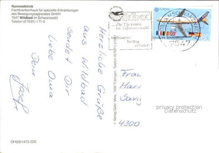 72535893 alte Postkarte Wildbad Schwarzwald Rommelklinik postalisch gelaufen Erhaltung siehe scans [FriedD77 kt118box] KatCode: 11110008235079