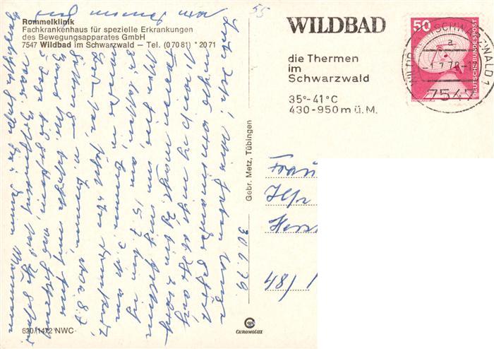 73924067 alte Postkarte Wildbad Schwarzwald Rommelklinik postalisch gelaufen Erhaltung siehe scans [FriedD77] KatCode: 11110008235079