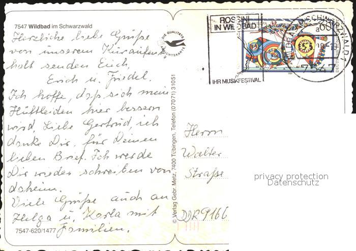 72450625 alte Postkarte Wildbad Schwarzwald Schwarzwaldbahn Kurzentrm postalisch gelaufen Erhaltung siehe scans KatCode: 11110008235079