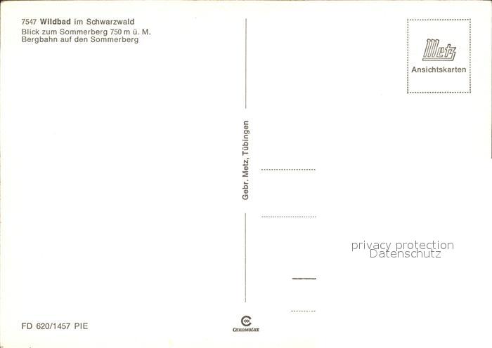 72309341 Wildbad Schwarzwald Sommerberg Bergbahn postalisch nicht gelaufen Erhaltung siehe scans KatCode: 11110008235079