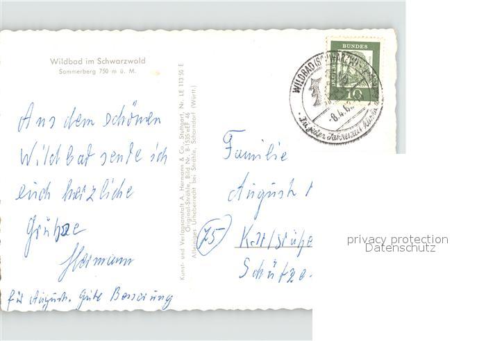 71850660 alte Postkarte Wildbad Schwarzwald Sommerberg Fliegeraufnahme postalisch gelaufen Erhaltung siehe scans KatCode: 11110008235079
