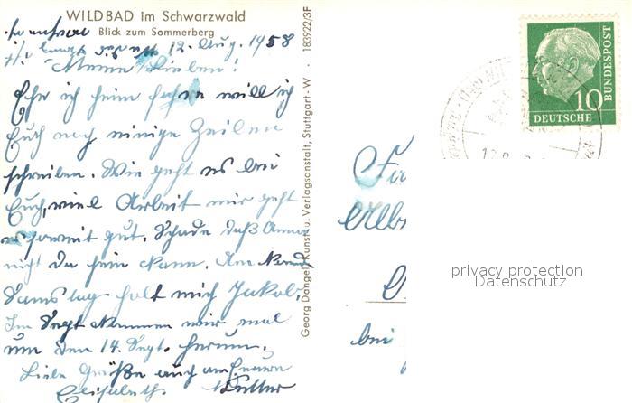 73141827 alte Postkarte Wildbad Schwarzwald Sommerberg Hotel gold. Ochsen postalisch gelaufen Erhaltung siehe scans [NatalD47] KatCode: 11110008235079