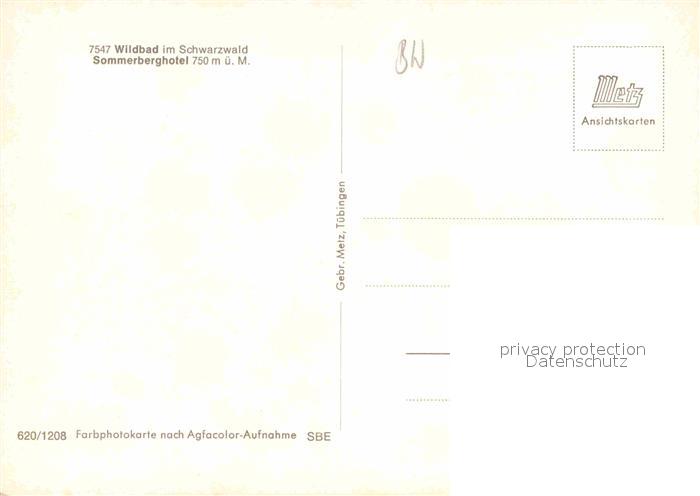 72855349 Wildbad Schwarzwald Sommerberghotel postalisch nicht gelaufen Erhaltung siehe scans [WerneD78] KatCode: 11110008235079