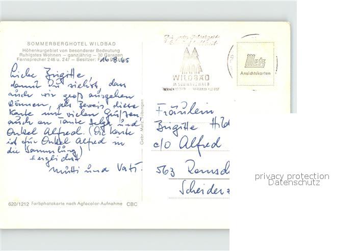 72431832 alte Postkarte Wildbad Schwarzwald Sommerberghotel postalisch gelaufen Erhaltung siehe scans KatCode: 11110008235079