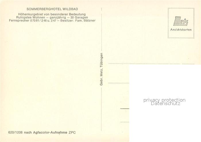 73722084 Wildbad Schwarzwald Sommerberghotel postalisch nicht gelaufen Erhaltung siehe scans [WerneD78] KatCode: 11110008235079