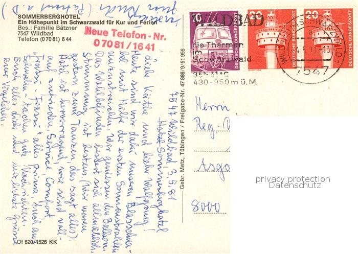 73608780 alte Postkarte Wildbad Schwarzwald Sommerberghotel Fliegeraufnahme postalisch gelaufen Erhaltung siehe scans [WerneD78] KatCode: 11110008235079