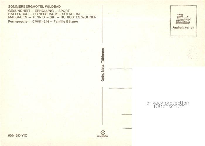 73055843 Wildbad Schwarzwald Sommerberghotel Wildbad postalisch nicht gelaufen Erhaltung siehe scans [WerneD78] KatCode: 11110008235079