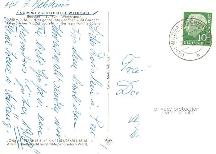 73301757 alte Postkarte Wildbad Schwarzwald Sommerberghotel Wildbad Fliegeraufnahme postalisch gelaufen Erhaltung siehe scans [PaolaD17] KatCode: 11110008235079