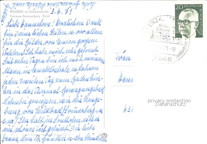 72492894 alte Postkarte Wildbad Schwarzwald Terrasse Sommerberg Hotel postalisch gelaufen Erhaltung siehe scans KatCode: 11110008235079