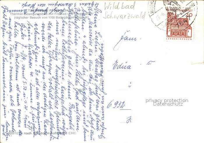 72515627 alte Postkarte Wildbad Schwarzwald Thermal Bewegungsbad postalisch gelaufen Erhaltung siehe scans KatCode: 11110008235079