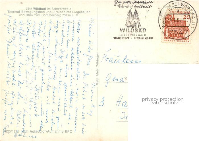 73111952 alte Postkarte Wildbad Schwarzwald Thermal-Bewegungsbad Sommerberg postalisch gelaufen Erhaltung siehe scans [NatalD47] KatCode: 11110008235079