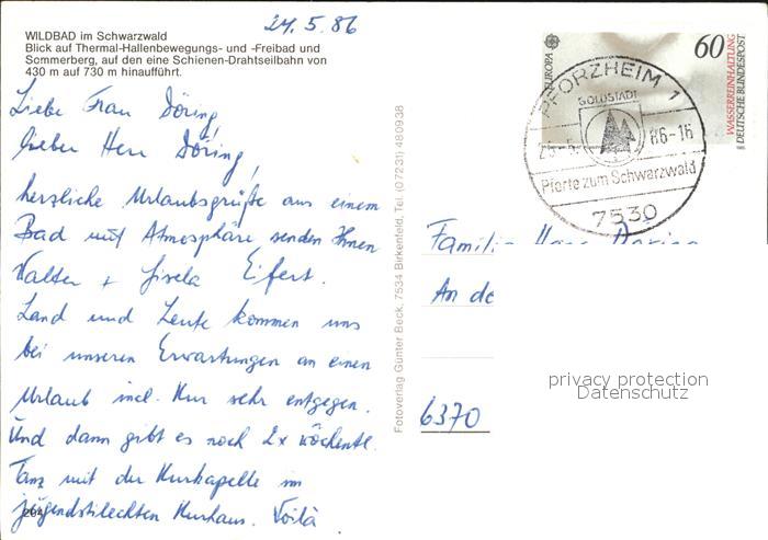 alte Postkarte Wildbad Schwarzwald Thermal Hallen und Freibad mit Sommerberg Schienen Drahtseilbahn postalisch gelaufen Erhaltung siehe scans