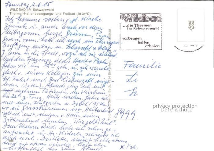 72478750 alte Postkarte Wildbad Schwarzwald Thermal Hallenbewegungs Freibad postalisch gelaufen Erhaltung siehe scans KatCode: 11110008235079
