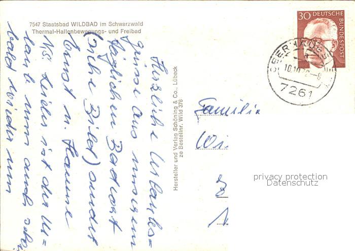 71928900 alte Postkarte Wildbad Schwarzwald Thermal Hallenbewegungs Freibad postalisch gelaufen Erhaltung siehe scans KatCode: 11110008235079