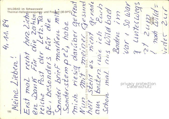72599691 Wildbad Schwarzwald Thermal Hallenbewegungsbad Freibad postalisch nicht gelaufen Erhaltung siehe scans [FriedD77] KatCode: 11110008235079