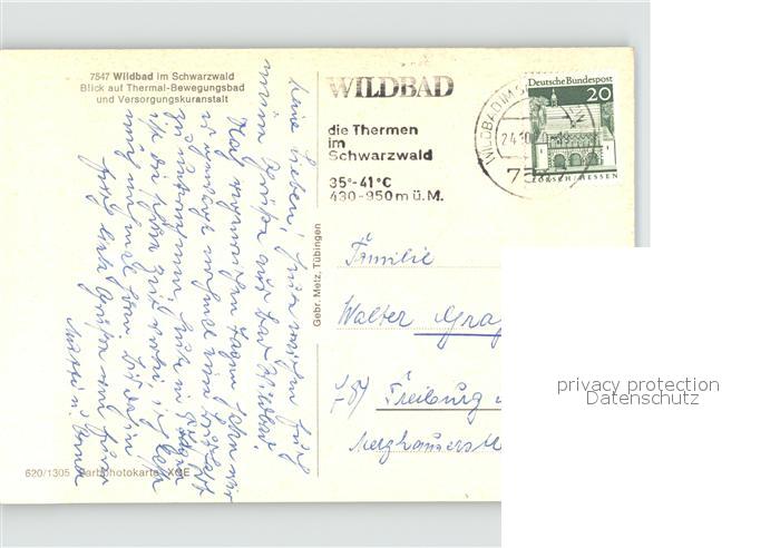 71850566 alte Postkarte Wildbad Schwarzwald Thermalbad Bewegungsbad Versorgungsanstalt postalisch gelaufen Erhaltung siehe scans KatCode: 11110008235079