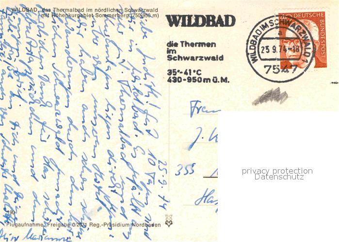 72905639 alte Postkarte Wildbad Schwarzwald Thermalbad Hoehenluftkurort Fliegeraufnahme postalisch gelaufen Erhaltung siehe scans [FriedD77] KatCode: 11110008235079
