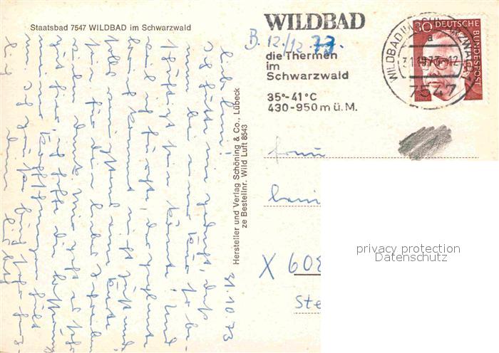 72905641 alte Postkarte Wildbad Schwarzwald Thermalbad Luftkurort Fliegeraufnahme postalisch gelaufen Erhaltung siehe scans [FriedD77] KatCode: 11110008235079