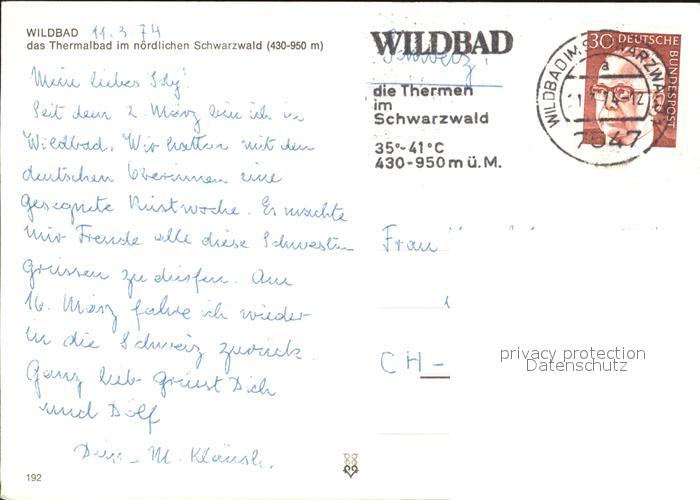 72557615 alte Postkarte Wildbad Schwarzwald Thermalbad Panorama postalisch gelaufen Erhaltung siehe scans [KathaD79] KatCode: 11110008235079