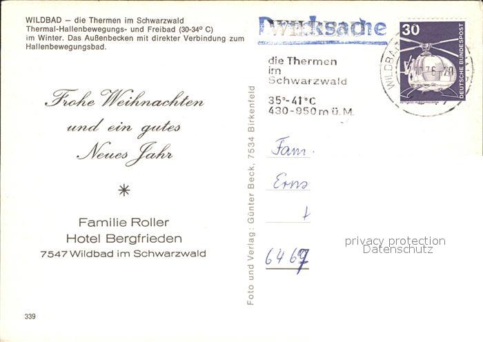 alte Postkarte Wildbad Schwarzwald Thermalbad Weihnachtsgruesse postalisch gelaufen Erhaltung siehe scans