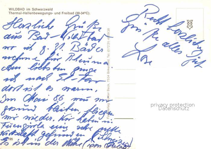 72905504 Wildbad Schwarzwald Thermalbewegungsbad postalisch nicht gelaufen Erhaltung siehe scans [NatalD47] KatCode: 11110008235079