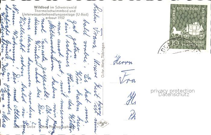 72390607 alte Postkarte Wildbad Schwarzwald Thermalschwimmbad postalisch gelaufen Erhaltung siehe scans KatCode: 11110008235079