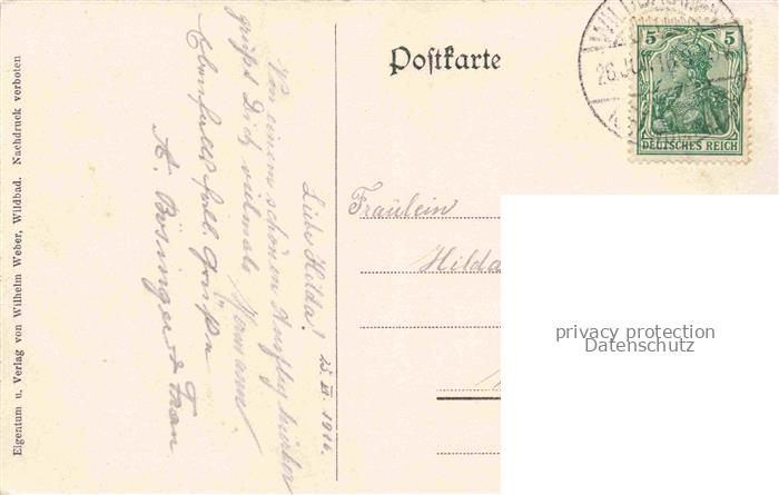 74082972 alte Postkarte WILDBAD Schwarzwald Trinkhalle postalisch gelaufen Erhaltung siehe scans [WerneD78] KatCode: 11110008235079