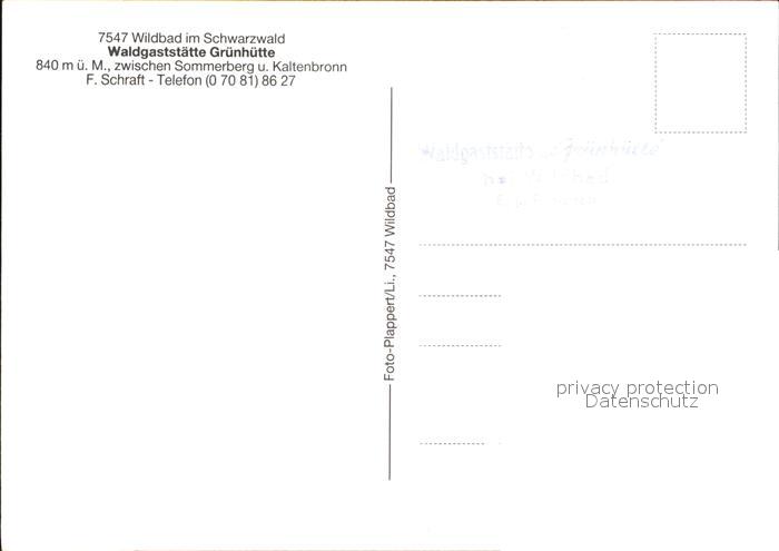 72534040 Wildbad Schwarzwald Waldgaststaette Gruenhuette postalisch nicht gelaufen Erhaltung siehe scans [FriedD77 kt118box] KatCode: 11110008235079
