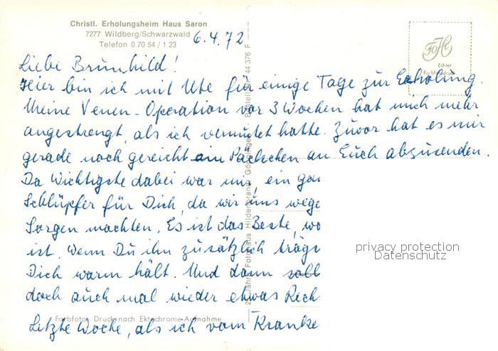 73834582 Wildberg Schwarzwald Christliches Erholungsheim Haus Saron postalisch nicht gelaufen Erhaltung siehe scans [FriedD77] KatCode: 11110008235080
