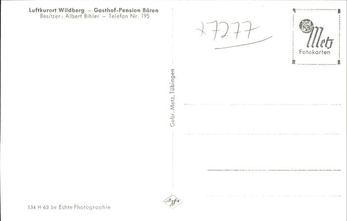 41210290 Wildberg Schwarzwald Gasthof Baeren postalisch nicht gelaufen gute Erhaltung Alte Ansichtskarte Postkarte hz_U Katcode 11110008235080