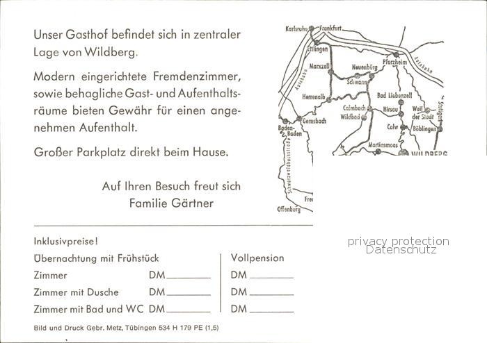 72506744 Wildberg Schwarzwald Gasthof Krone postalisch nicht gelaufen Werbekarte (keine Postkarte) Erhaltung siehe scans KatCode: 11110008235080