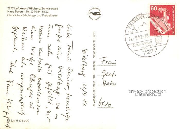 73004145 alte Postkarte Wildberg Schwarzwald Haus Saron postalisch gelaufen Erhaltung siehe scans [KathaD81] KatCode: 11110008235080