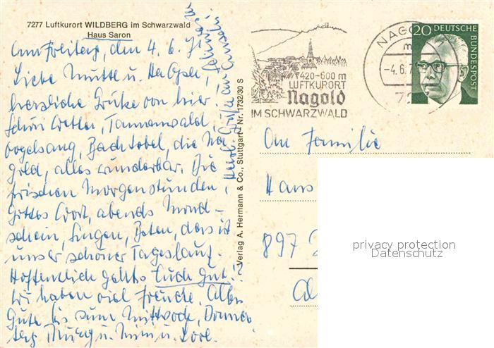 72888072 alte Postkarte Wildberg Schwarzwald Haus Saron postalisch gelaufen Erhaltung siehe scans [AndreD76] KatCode: 11110008235080