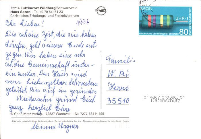 72449266 alte Postkarte Wildberg Schwarzwald Haus Saron Christl Freizeitzentrum Teilansichten postalisch gelaufen Erhaltung siehe scans KatCode: 11110008235080