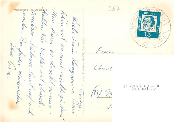 73335573 alte Postkarte Wildemann Blick ins Tal auf den Ort postalisch gelaufen Erhaltung siehe scans [FriedD77] KatCode: 11110003153015